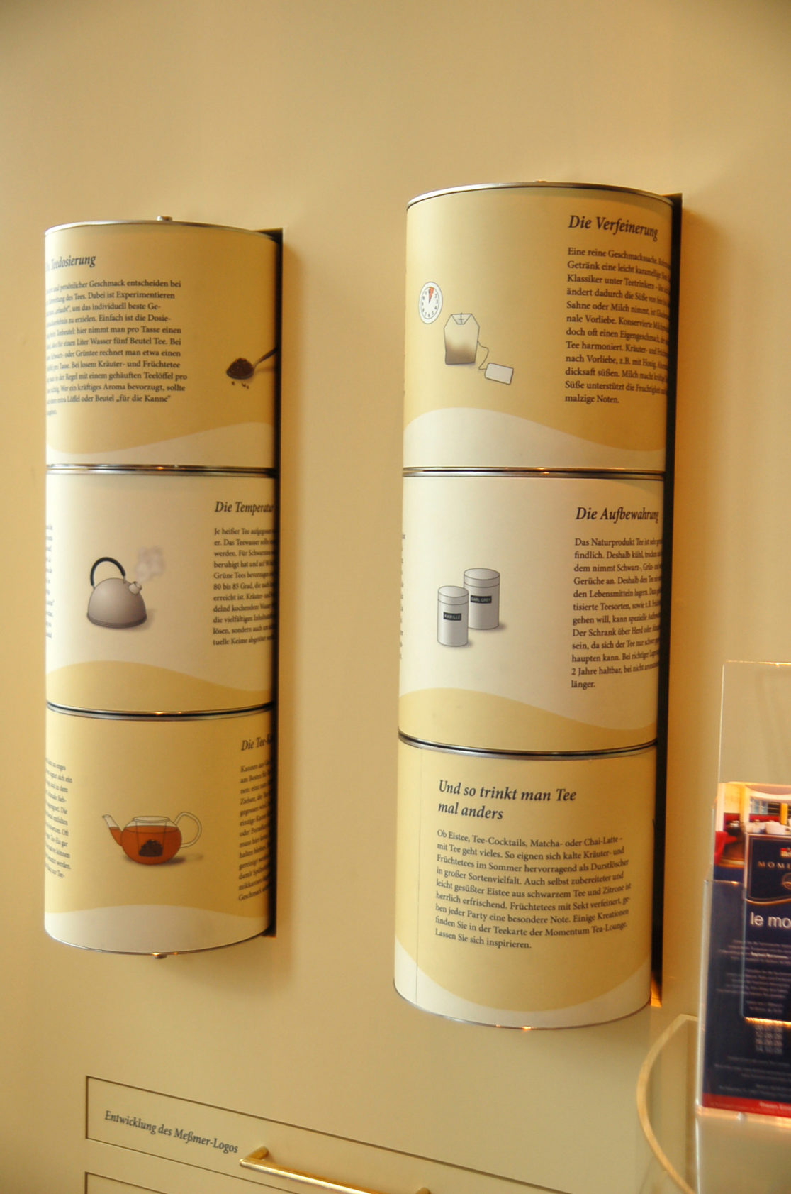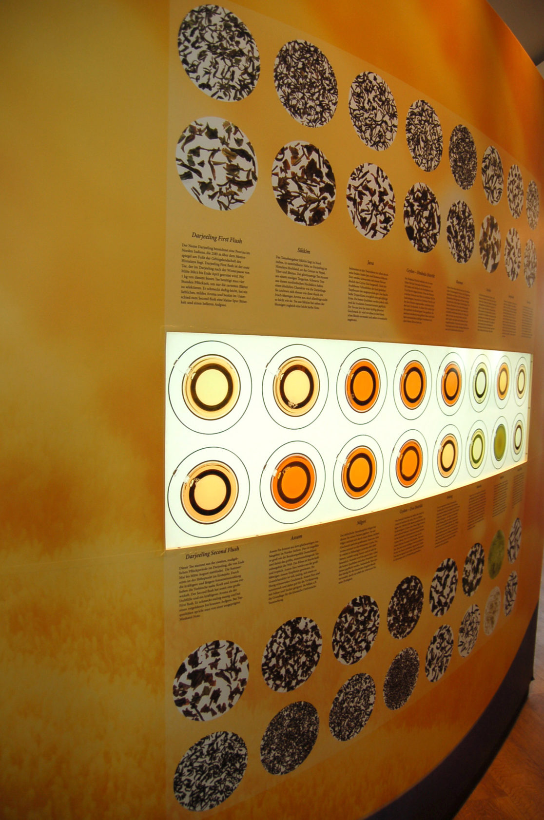 Das Messmer Momentum ist eine Erlebniswelt mit Tealounge und Teeverkostung in der HafenCity Hamburg. Das Architekturbüro dialog Hamburg hat die Gestaltung der Firmenausstellung übernommen. Unser Büro hat dafür die Grafik im Raum erstellt.